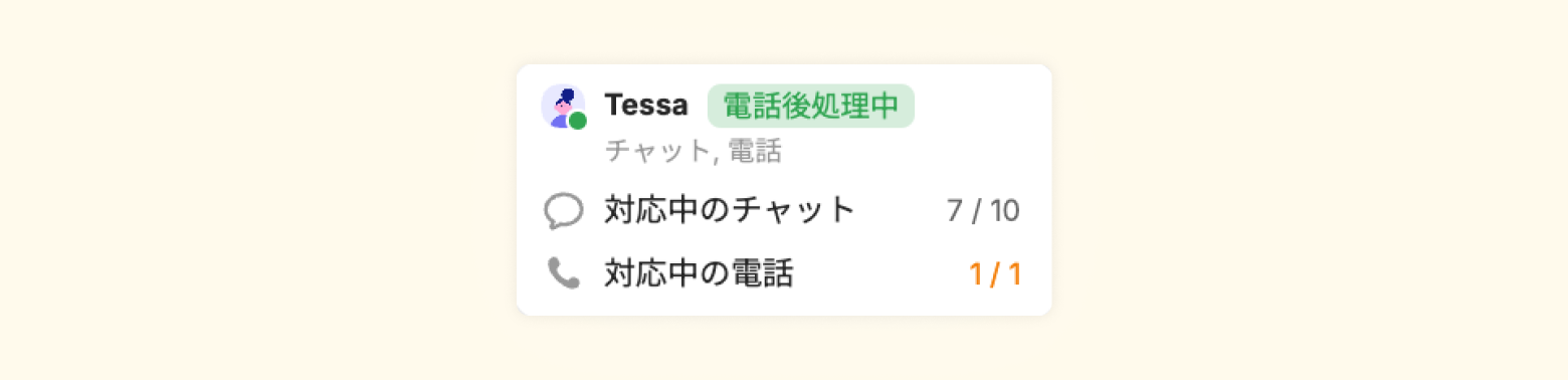 対応中のチャットが最大自動割り当て数を超えても、電話は自動割り当てできます。