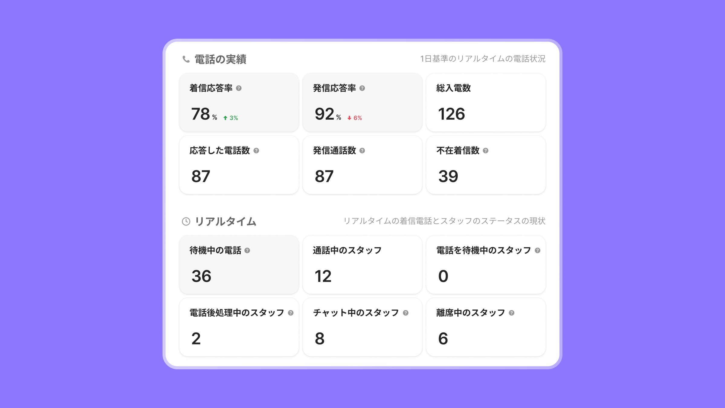 業務体制の調整:待機中の電話数とスタッフの状況を比較して電話対応の人数を調整して、電話対応可能なスタッフを再配置できます。