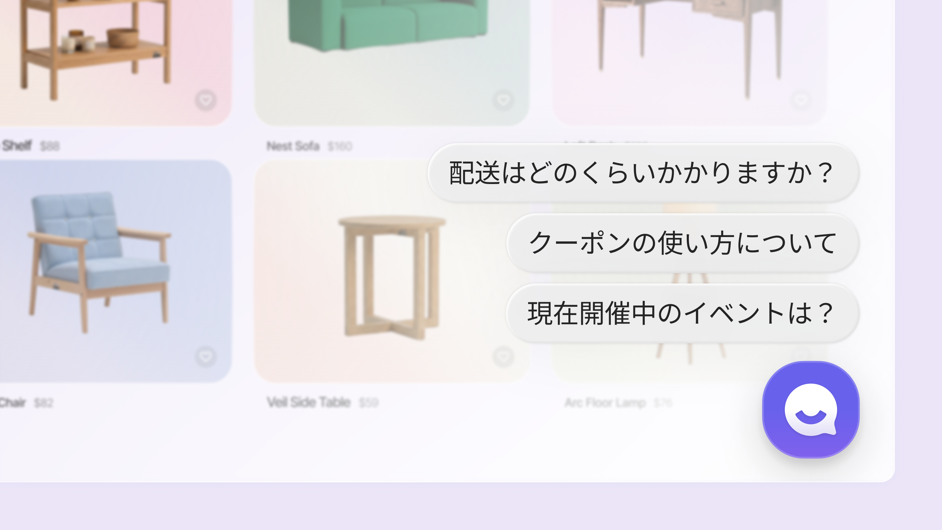 これまではチャット画面に入らないとおすすめ質問を確認できませんでしたが、今後はチャットボタンの上に表示されます。顧客は直接入力しなくても、質問をクリックするだけですぐに回答を受け取れます。
