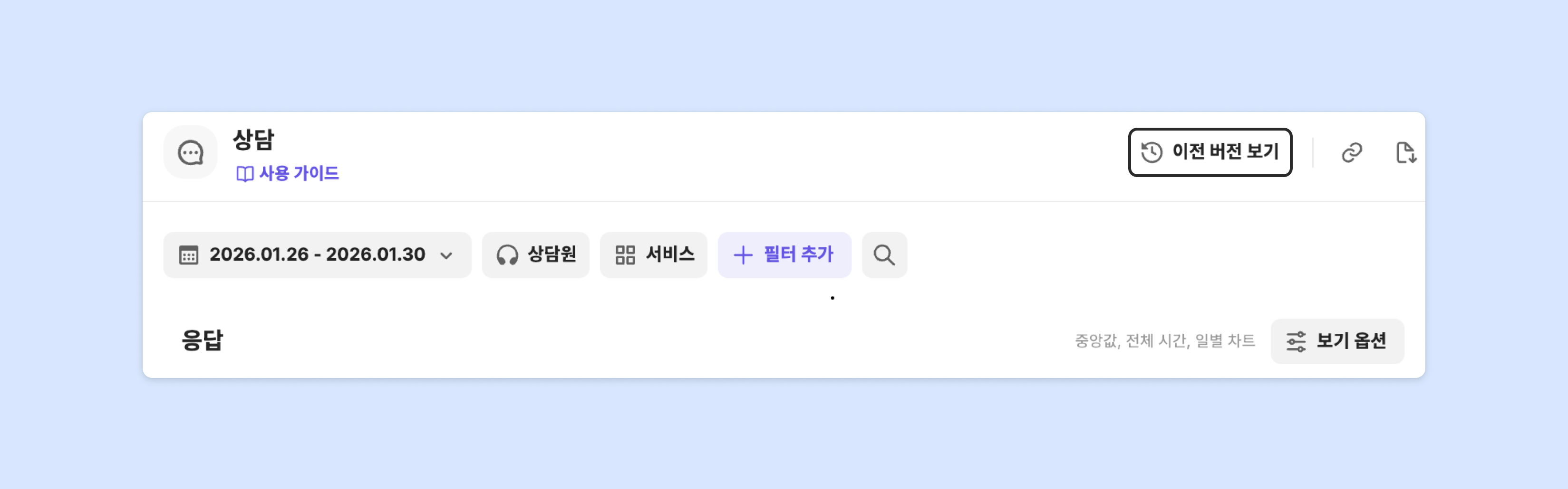 이전 버전 보기로 제공되는 구버전 상담 통계 UI가 종료될 예정으로 안내해 드립니다. 개선된 상담 통계를 이용해 주세요.