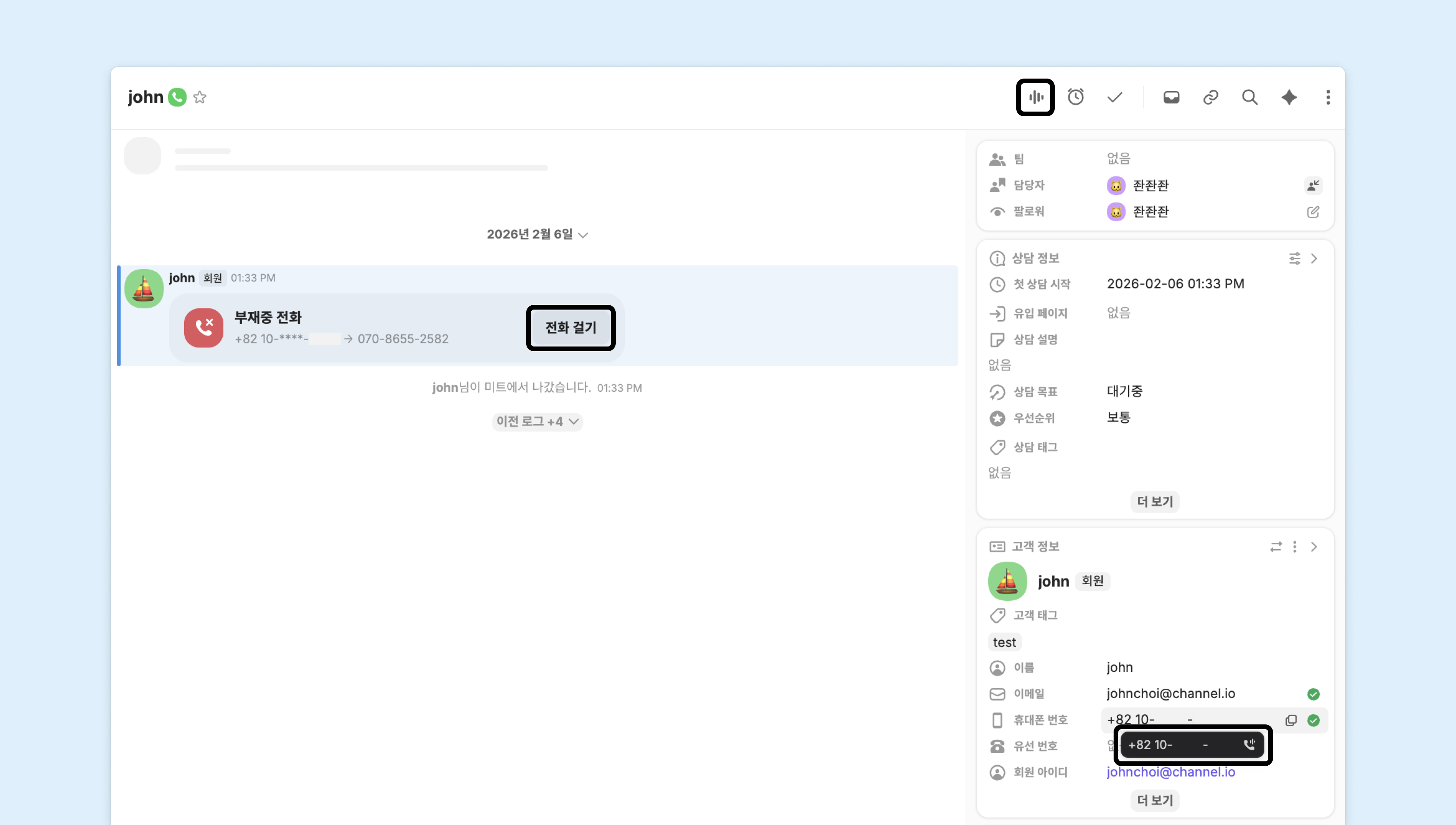 공지 대상: 채널톡 전화번호를 2개 이상 발급받아 사용하는 채널