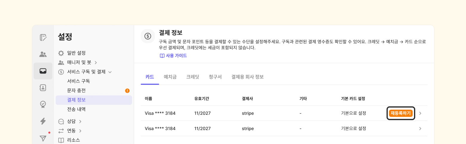 대상: 해외 결제(Stripe)를 통해 채널톡 이용료를 결제 중인 채널