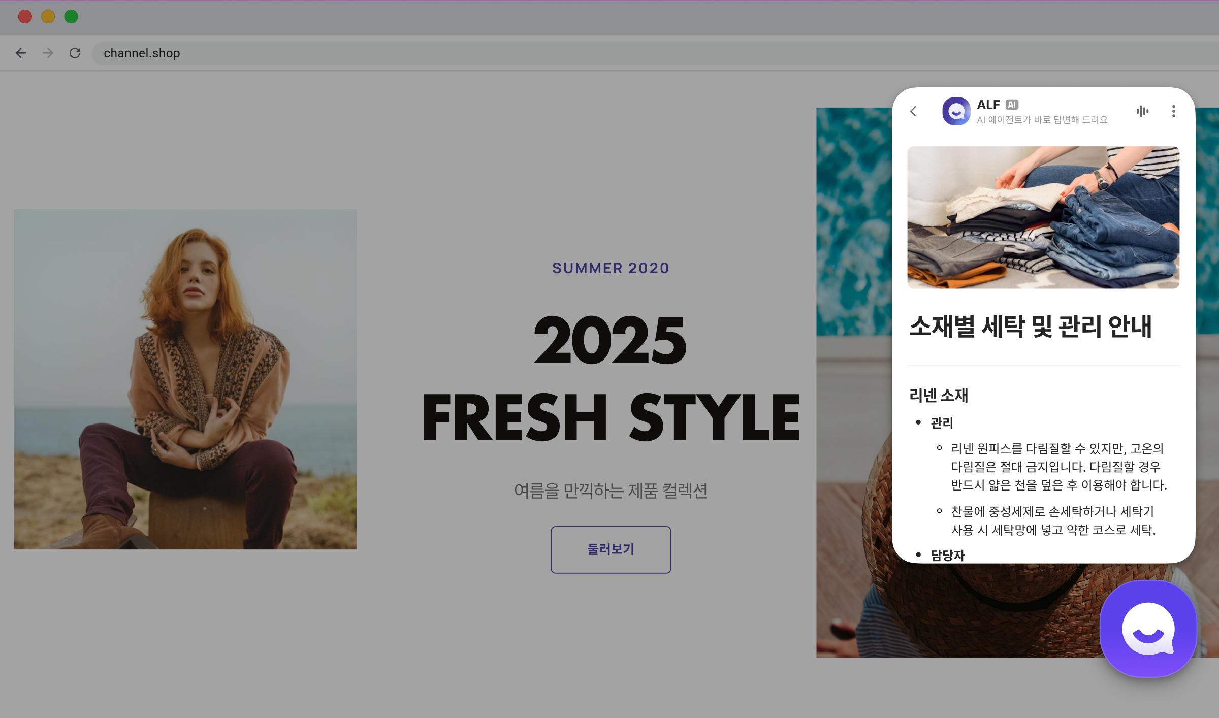 고객에게 아티클 링크를 전달하거나 ALF가 참조한 아티클을 클릭하면 아티클이 새 탭으로 열리며 사이트를 이탈하게되는 아쉬움이 있었는데요. 이제 고객이 사이트를 이탈하지 않고도 채널톡 화면 내에서 아티클을 자연스럽게 확인할 수 있도록 개선되었어요. (→ 더 알아보기)