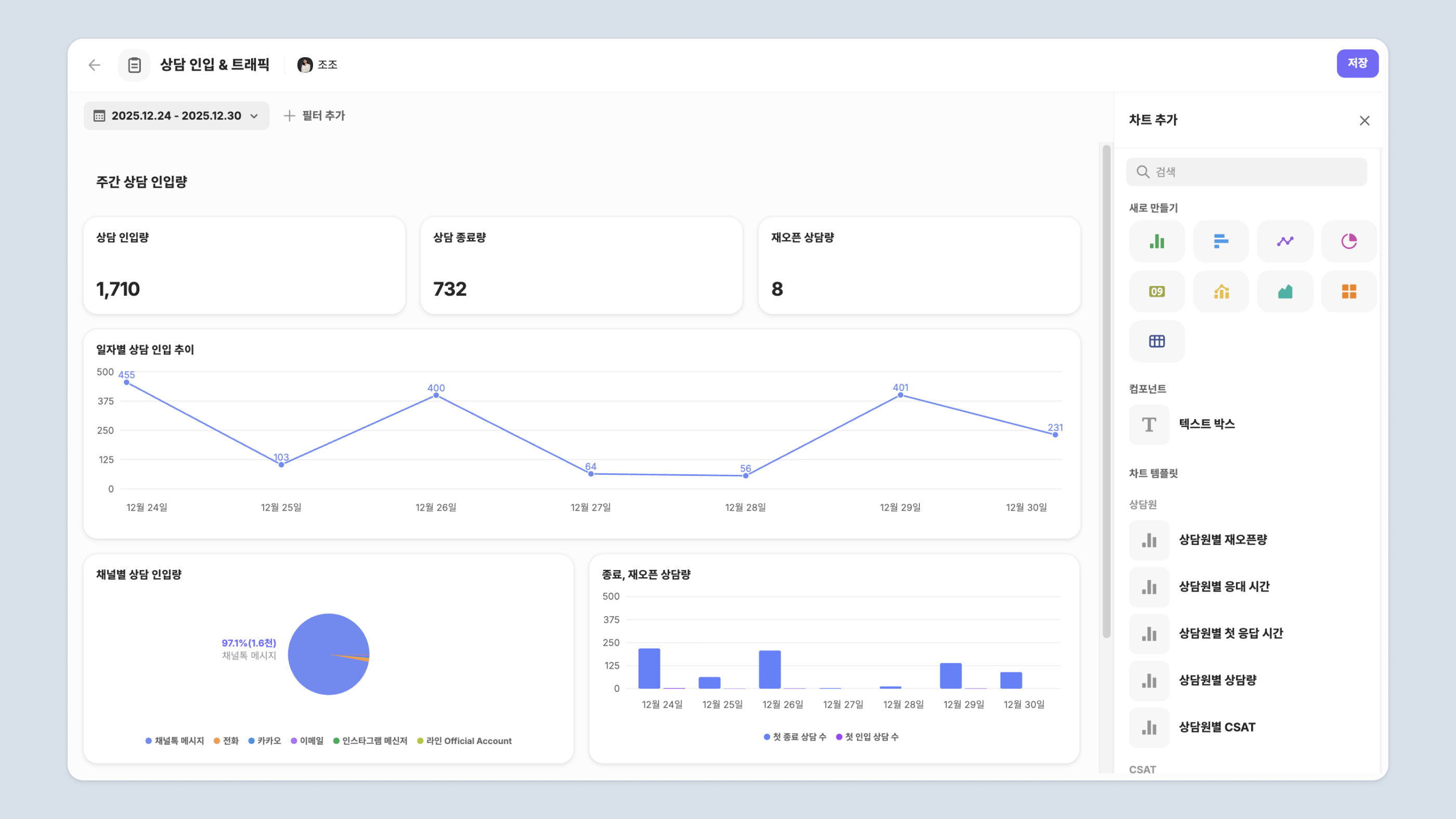 상담 흐름을 한 눈에 확인할 수 있는 '상담 처리 퍼널' 기능이 추가돼요.