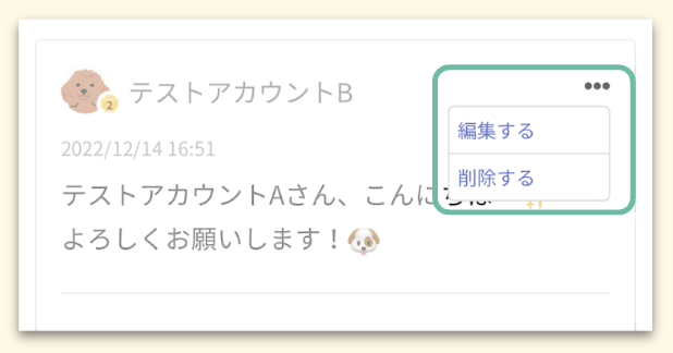 コメントの右上に表示された[•••]を押下すると、編集と削除の選択肢が表示されます。[削除する]を押下してください。
