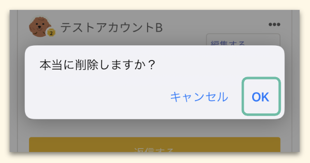 確認のポップアップが出てきたら、[OK]を押下するとコメントが削除されます。