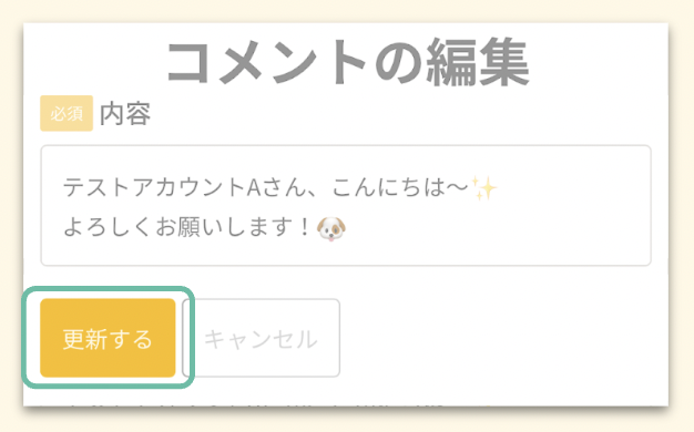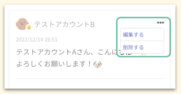 コメントの右上に表示された[•••]を押下すると、編集と削除の選択肢が表示されます。[編集する]を押下してコメントを編集しましょう。