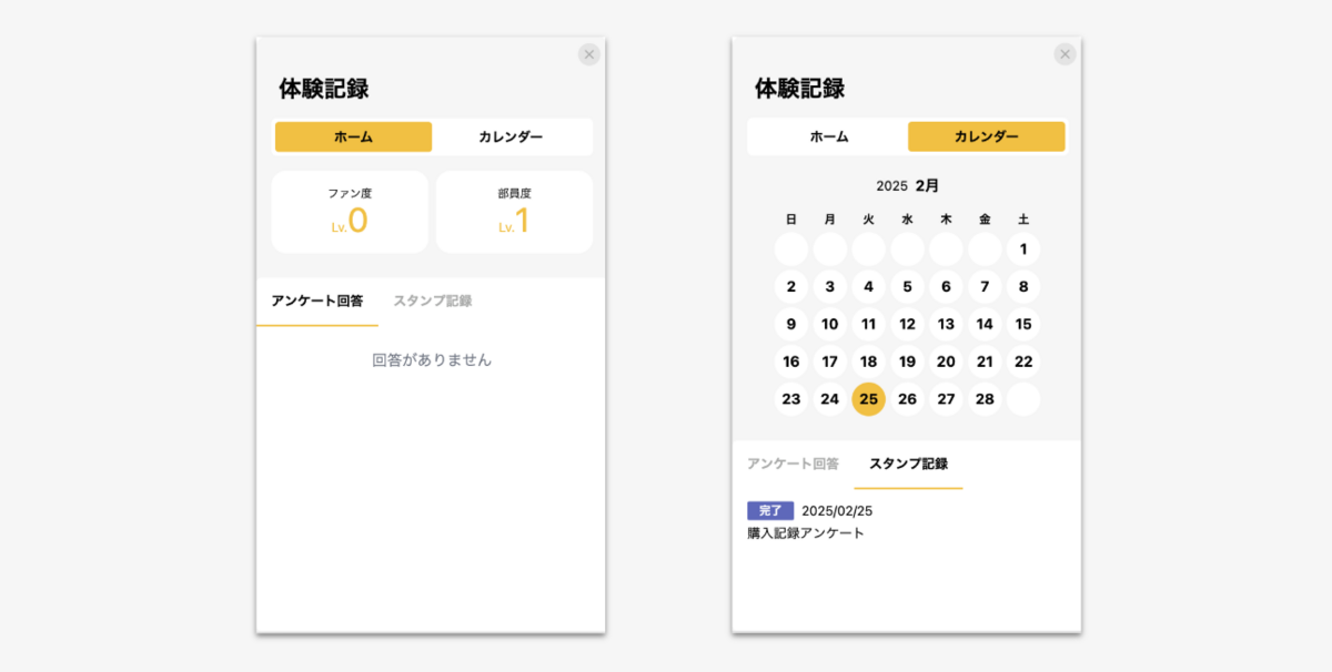 いつ、どのアンケートに回答したかの回答履歴および、回答内容の確認ができます。