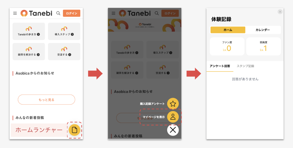 ポップアップを閉じたあとにマイページを表示する場合は、画面右下の[ホームランチャーボタン]→ [マイページを表示] を押下することで、マイページを表示することができます。