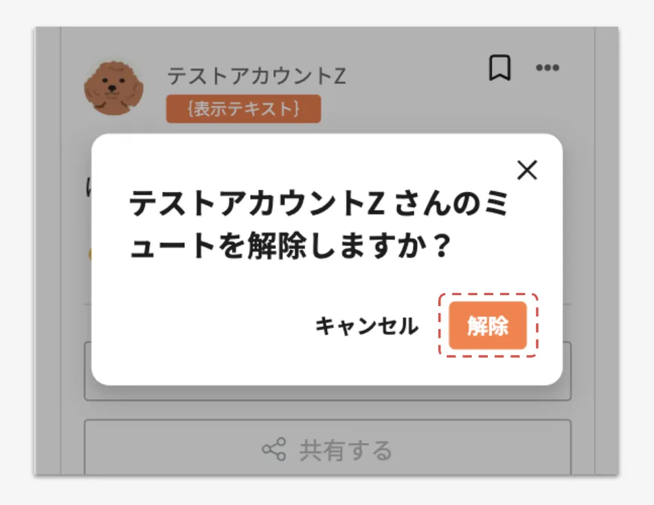 ポップアップに表示された[解除]を押下してください。当該ユーザーのミュートを解除することができます。