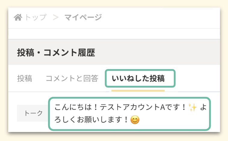 ※コミュニティによってはマイページに投稿・コメント履歴が表示されない場合があります。
