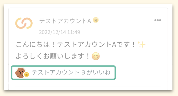 リアクションされた投稿やコメント内にリアクションしたユーザーが表示されます。