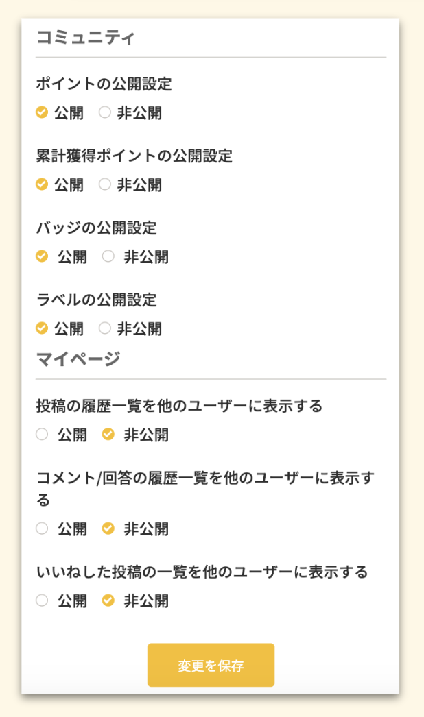 他ユーザーに公開する内容を設定し、[変更を保存]を押下しましょう。