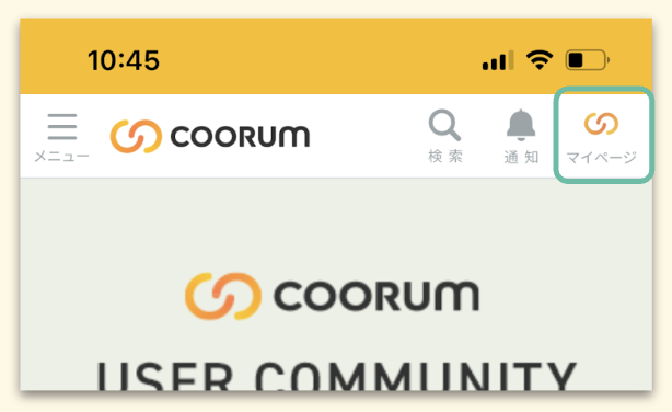 コミュニティサイト右上に表示された自分のアイコン(プロフィール画像)を押下して、マイページにアクセスします。