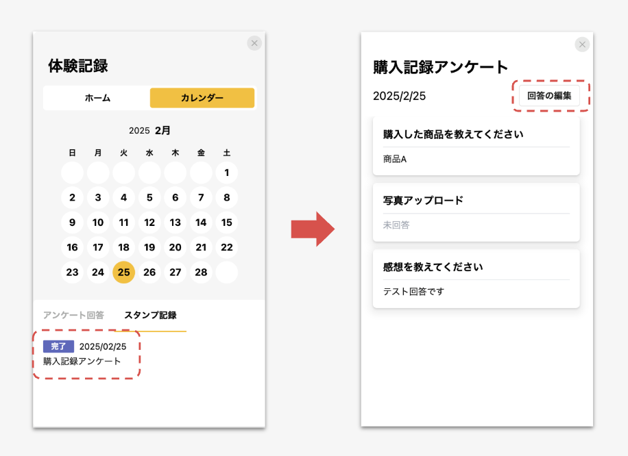 右上の[回答の編集]を押下すると、回答内容を編集できます。