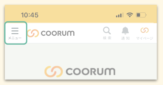 コミュニティサイト左上に表示された[≡(ハンバーガーメニュー)]を押下します。