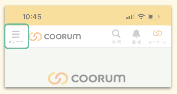 コミュニティサイト左上に表示された[≡(ハンバーガーメニュー)]を押下すると、メニューが表示されます。