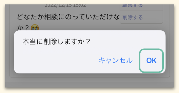 確認のポップアップが出てきたら、[OK]を押下すると投稿が削除されます。