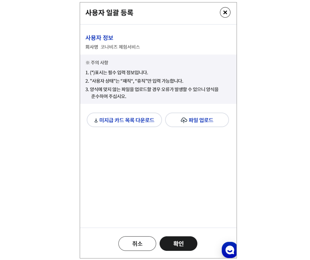 카드를 사용할 사용자를 일괄 등록할 수 있습니다.