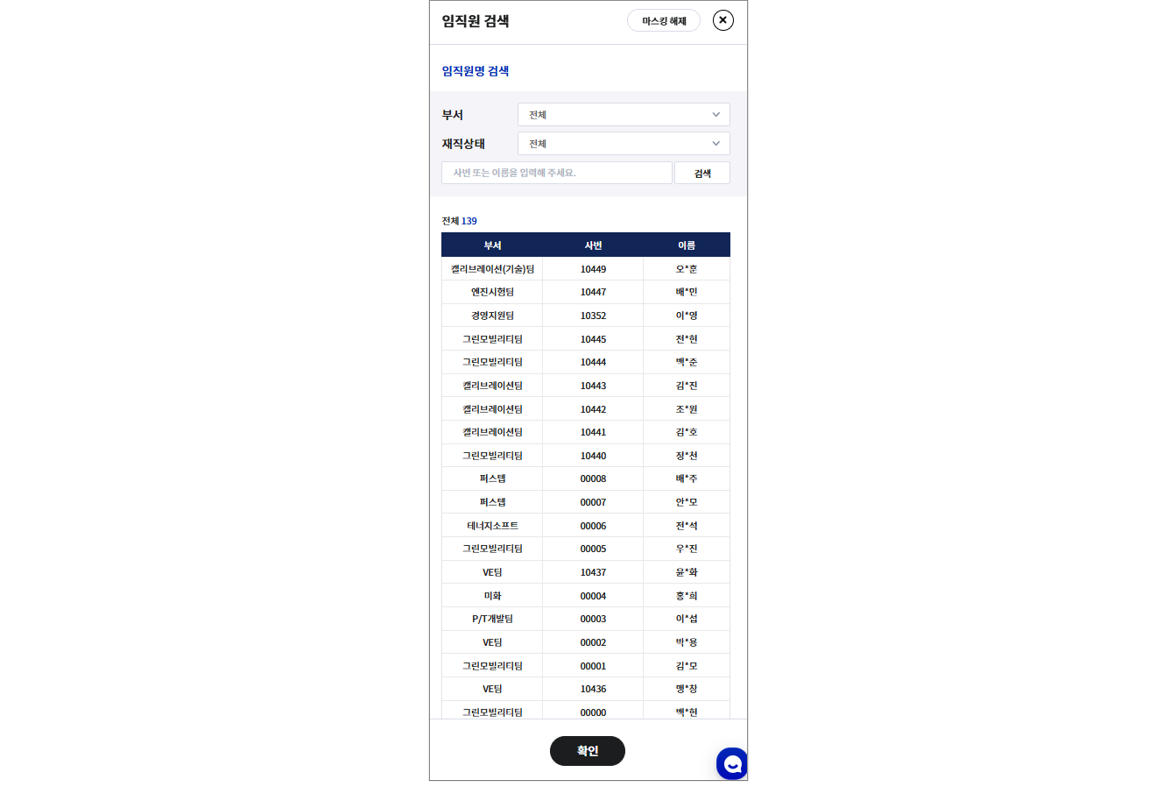 카드에 임직원 정보 매핑 및 카드에 매핑된 임직원 정보 확인이 가능합니다.