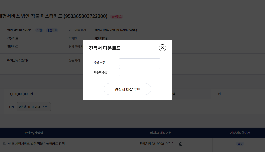 카드 주문 수량 및 배송비 수량을 입력 후 다운로드 버튼을 눌러주세요.