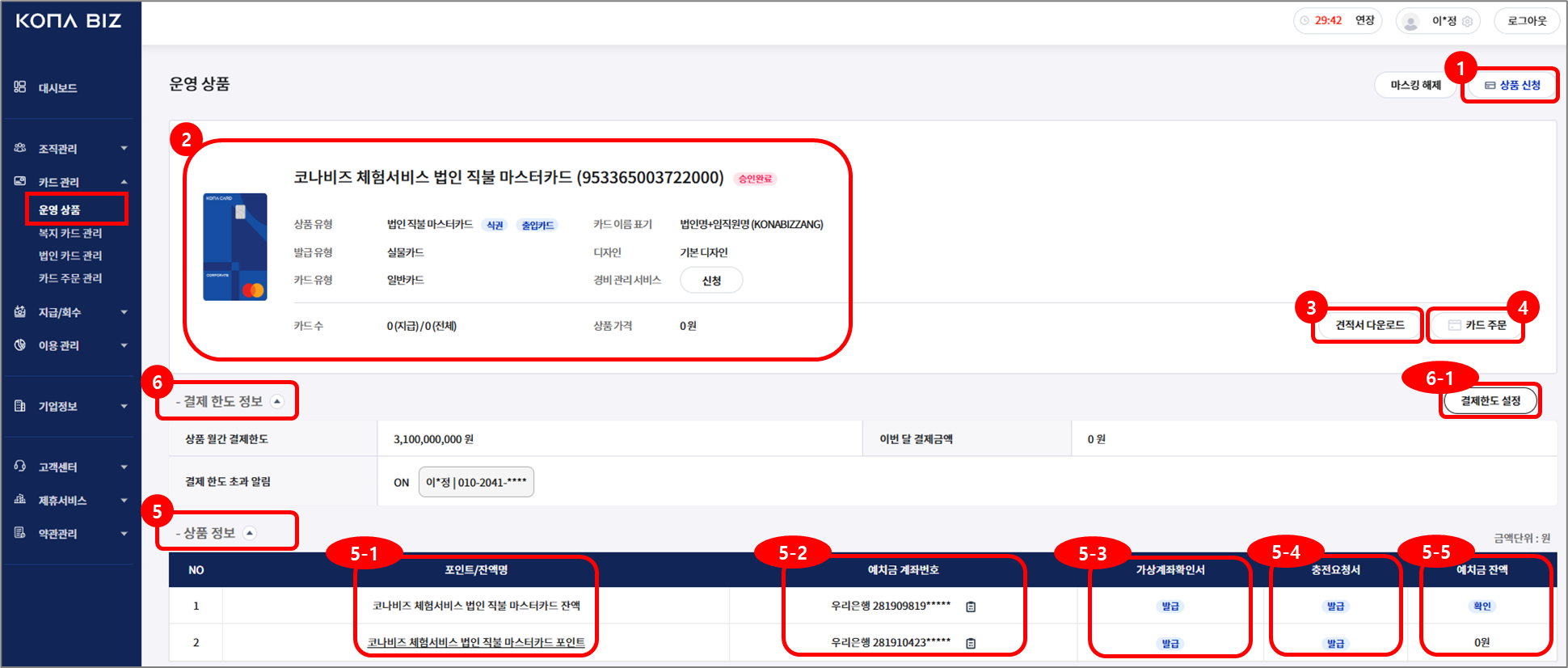 메뉴: [카드 관리] - [운영 상품]