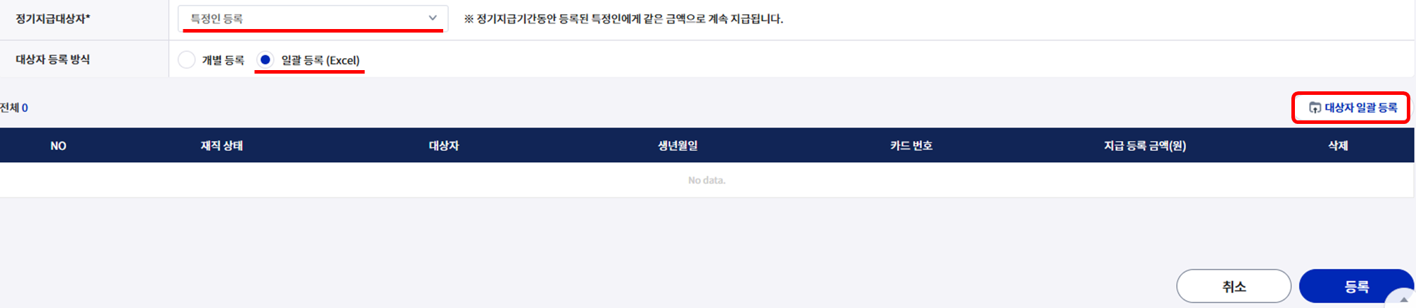 정기 지급 대상자