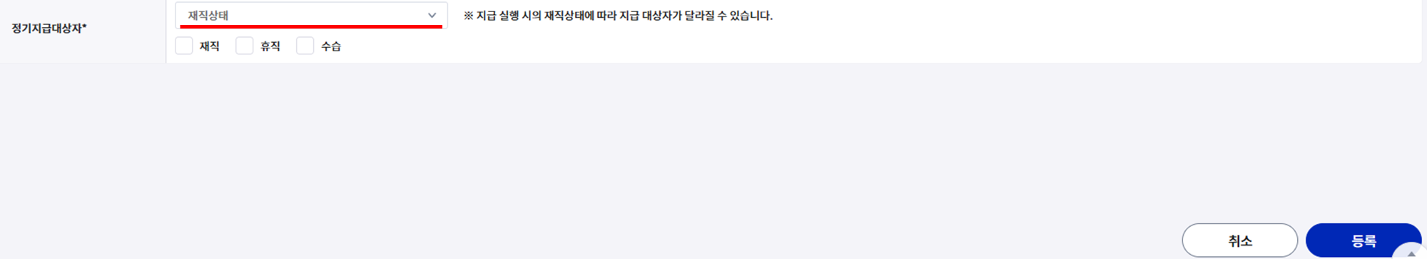 지급 시점에 선택한 재직상태의 임직원에게 배정이 진행 됩니다.