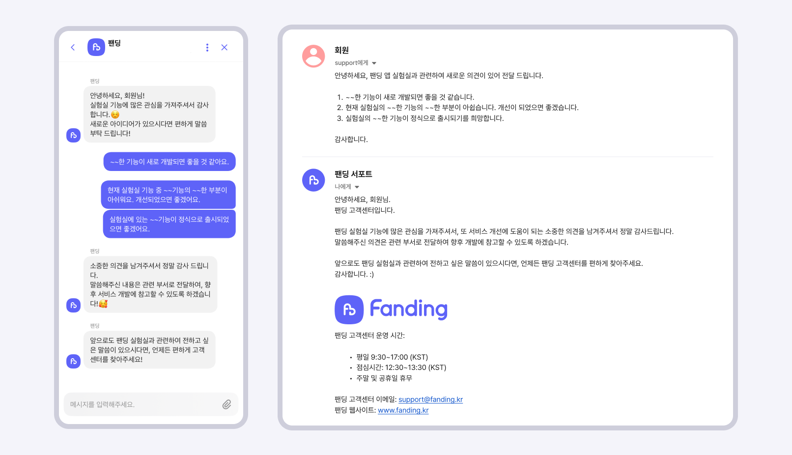 이메일로 의견 남기기 : support@fanding.kr