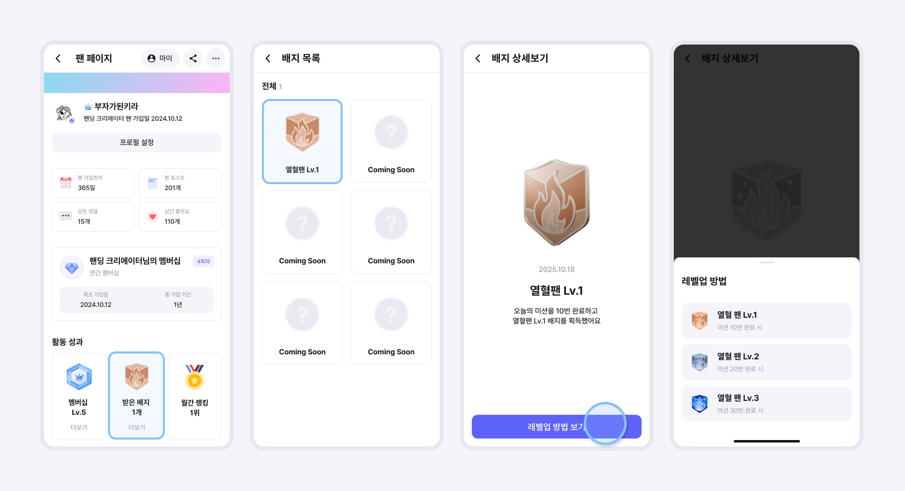 활동 성과 : 팬 활동을 통해 달성한 성과와 획득한 배지