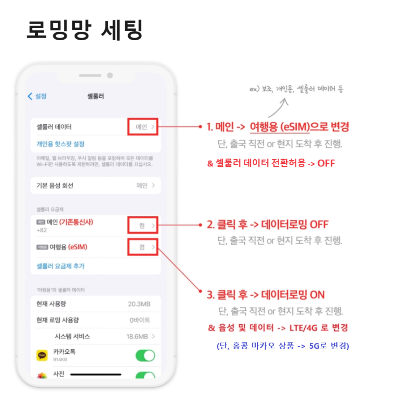 현지 도착하시면 다시 회선을 [[켬]]으로 변경해 으로 변경해 주신 후 주신후 상품에 맞는 설정을 진행해 주세요.