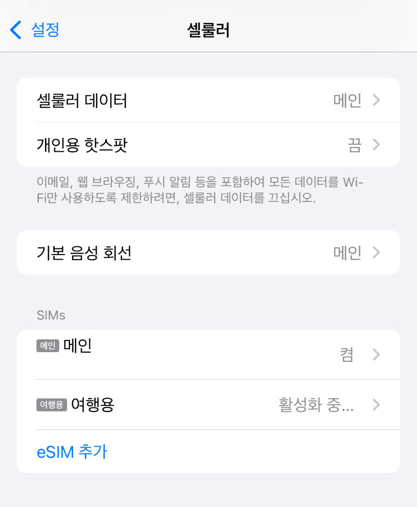 eSIM 활성화 하기 [로밍망]