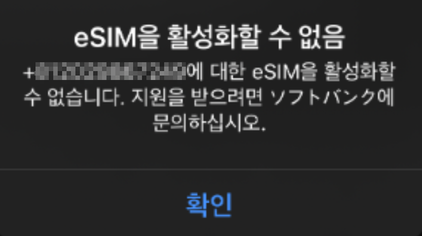 "활성화 중.." 이 끝난 후에는 [eSIM을 활성화 할 수 없음] 이라는 팝업이 뜰 수 있어요.