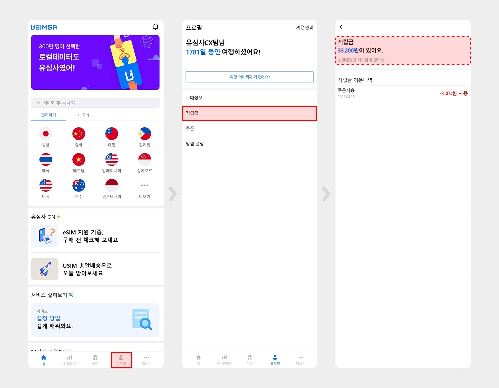 보유 적립금은 홈페이지 하단 [프로필] → [적립금]에서 확인 하실 수 있어요.