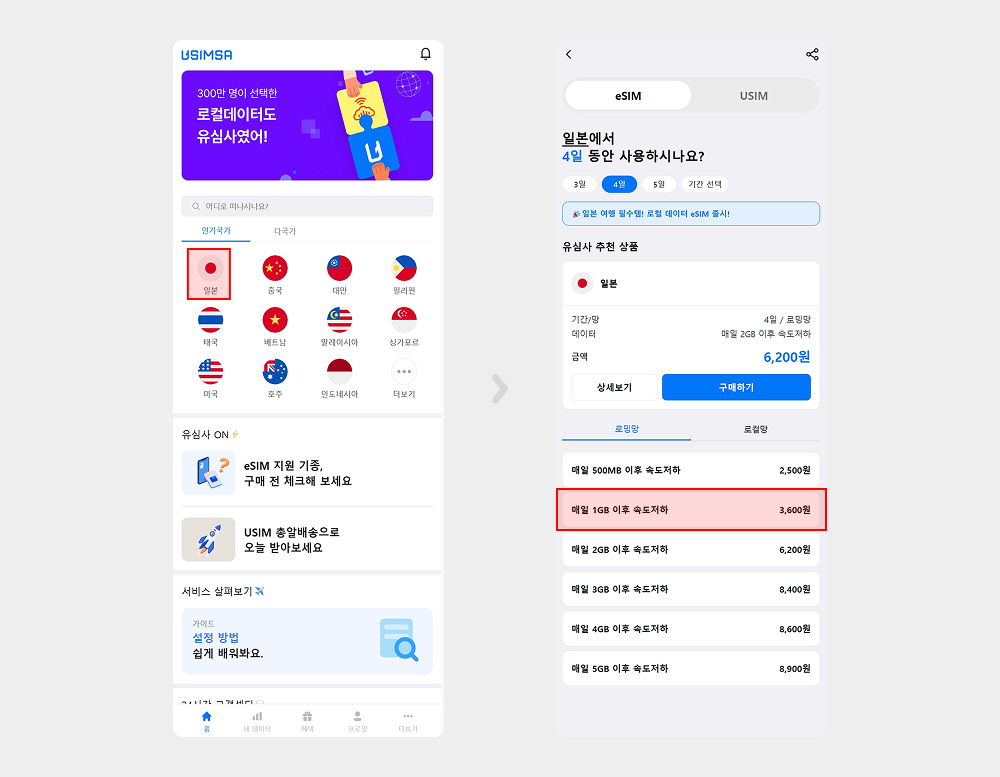 eSIM 구매하기!