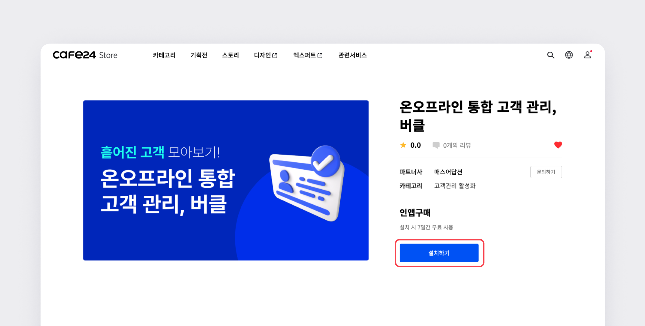 설치하기를 클릭하면 [버클 x 카페24 랜딩 페이지]로 이동합니다.