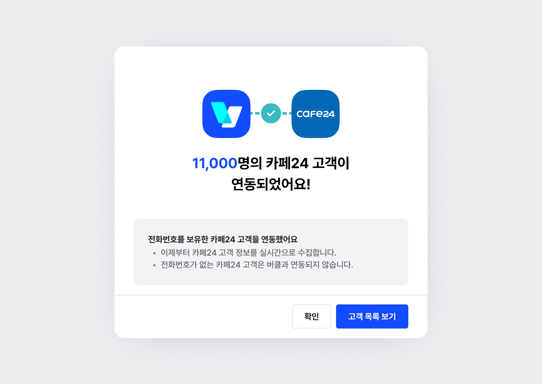 전화번호가 없는 카페24 고객은 버클과 연동되지 않습니다.