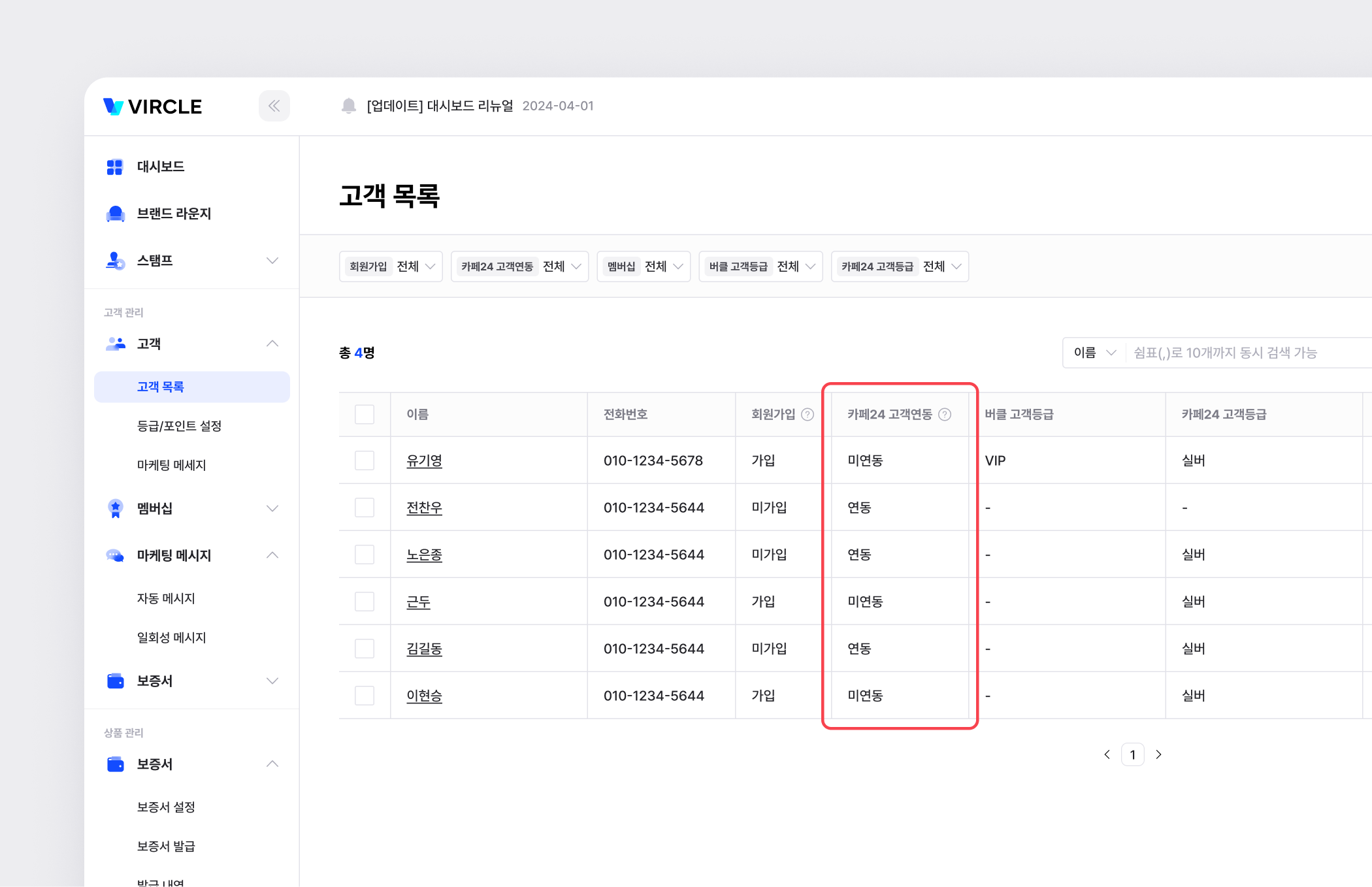 연동된 고객은 [고객 목록]에서 확인할 수 있습니다.
