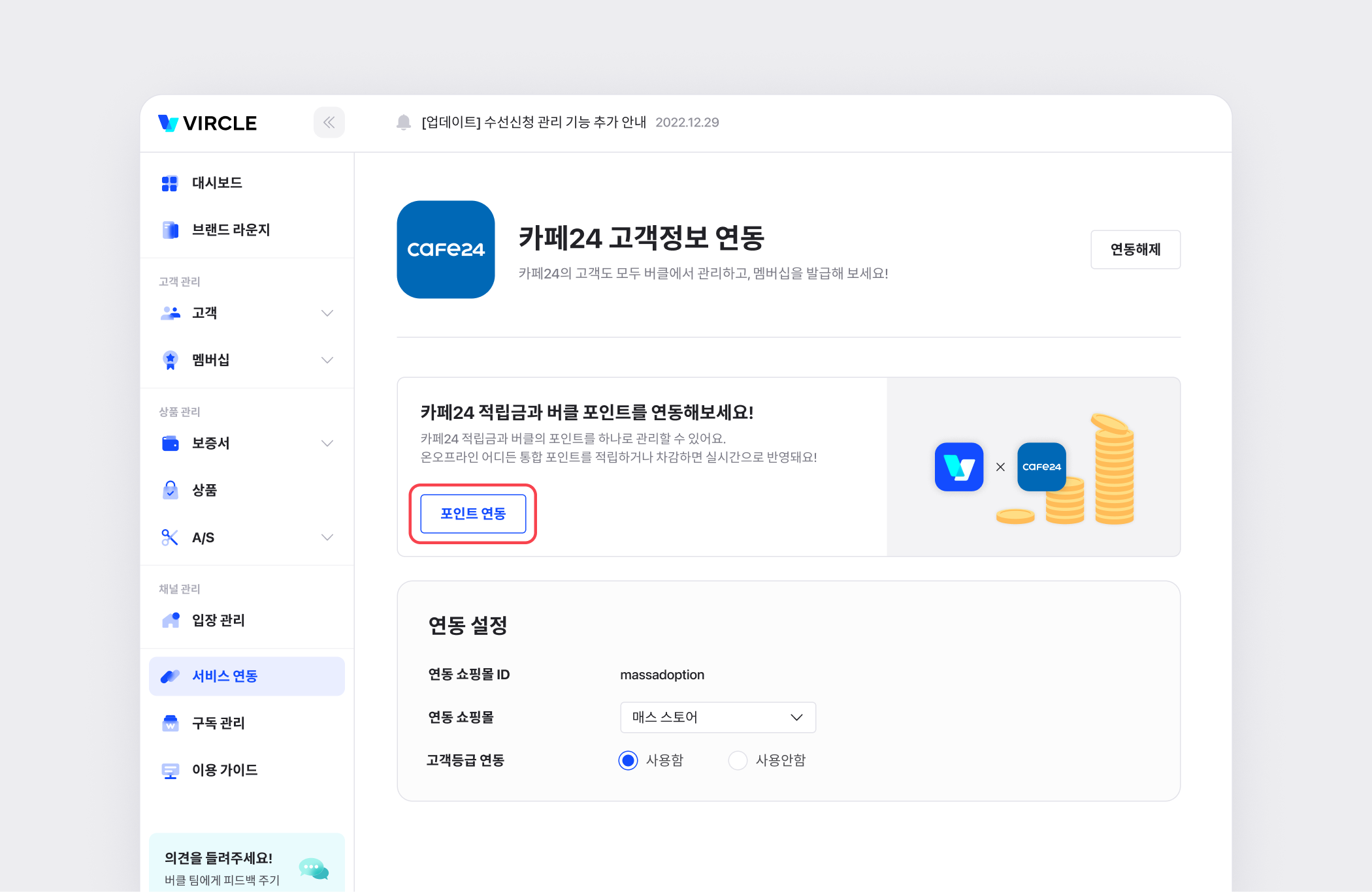 버클과 카페24 고객을 통합하고 등급, 적립금도 가져올 수 있어요