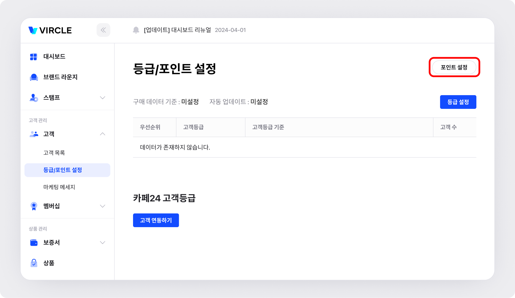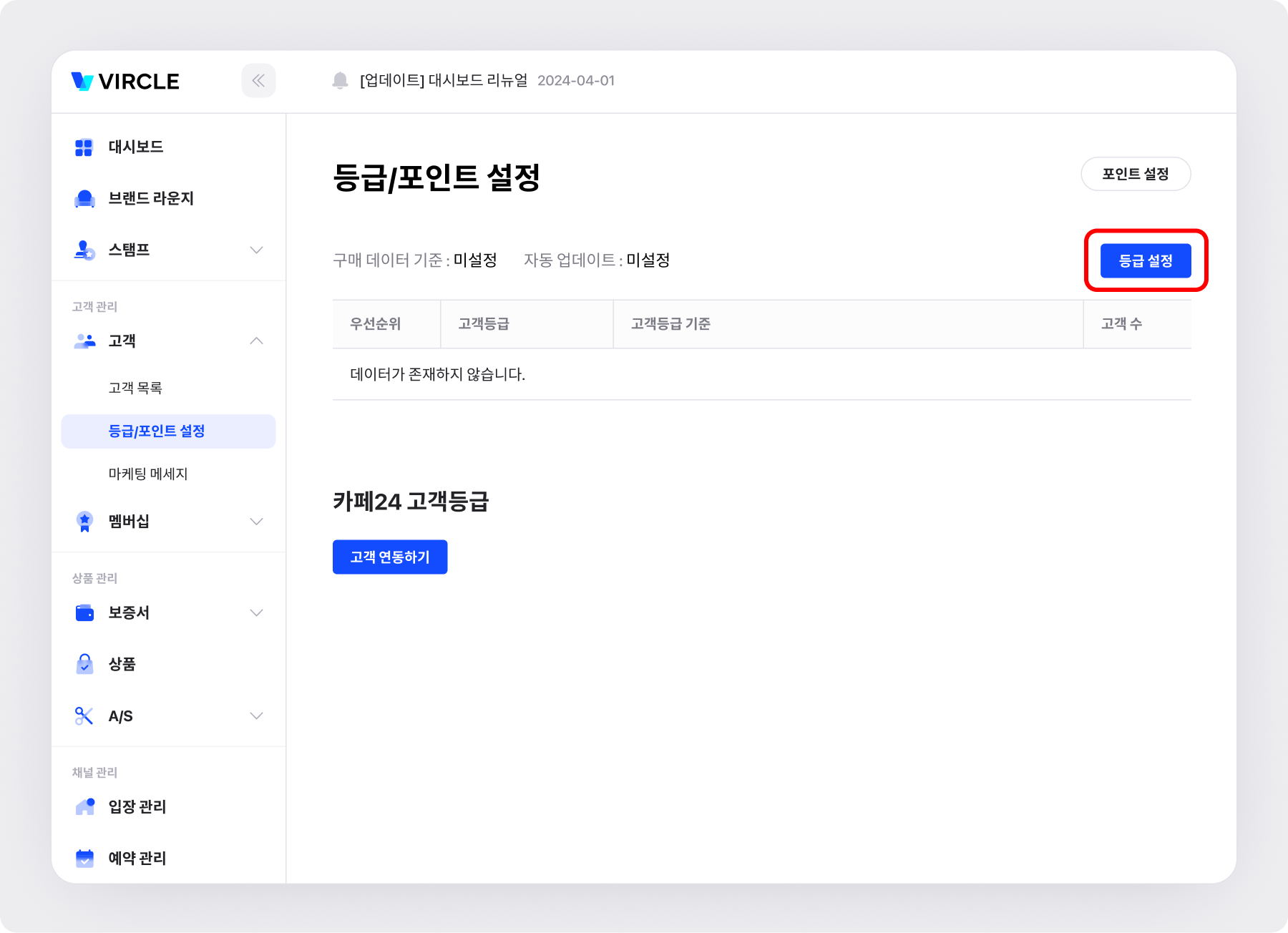 등급/포인트 설정