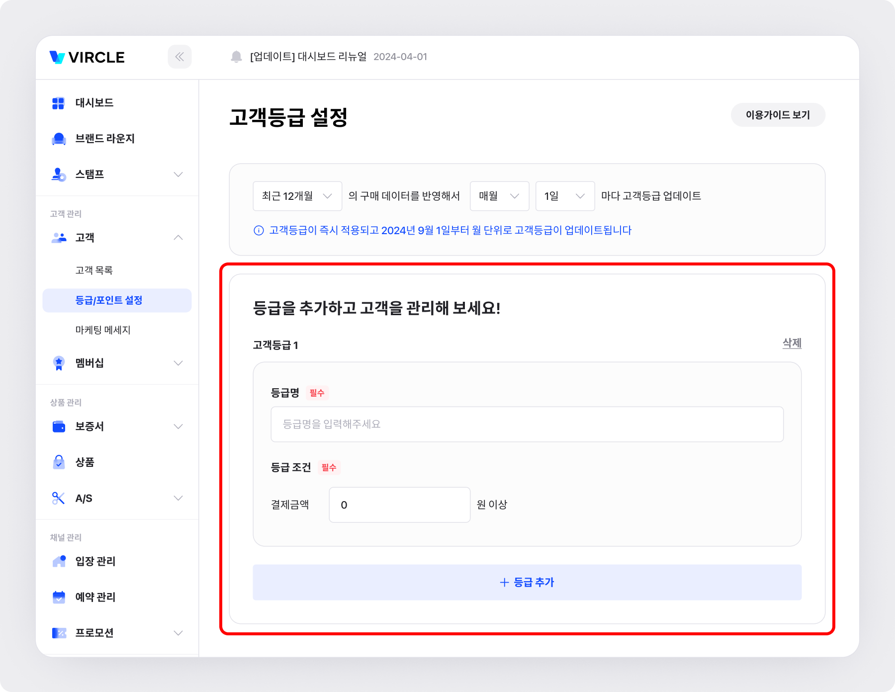 • 고객이 여러 등급에 포함되면 우선순위 상위 등급이 적용됩니다.