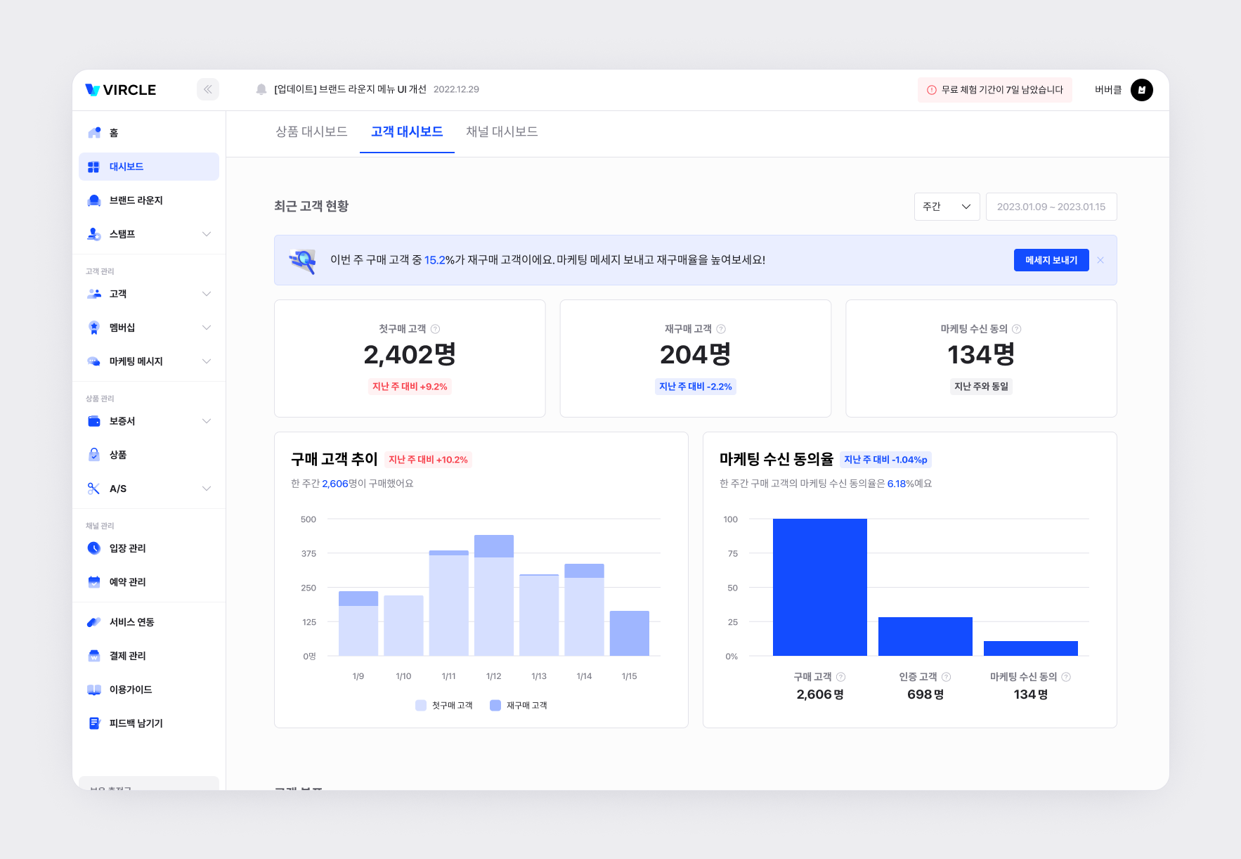 고객의 재구매율을 높일 수 있는 인사이트를 제공합니다.