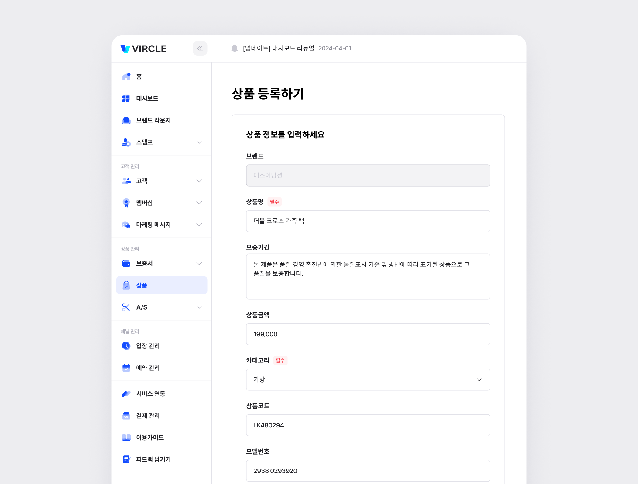 상품정보를 미리 등록해두면 보증서 발급 시 클릭 한 번으로 상품 정보가 채워집니다.