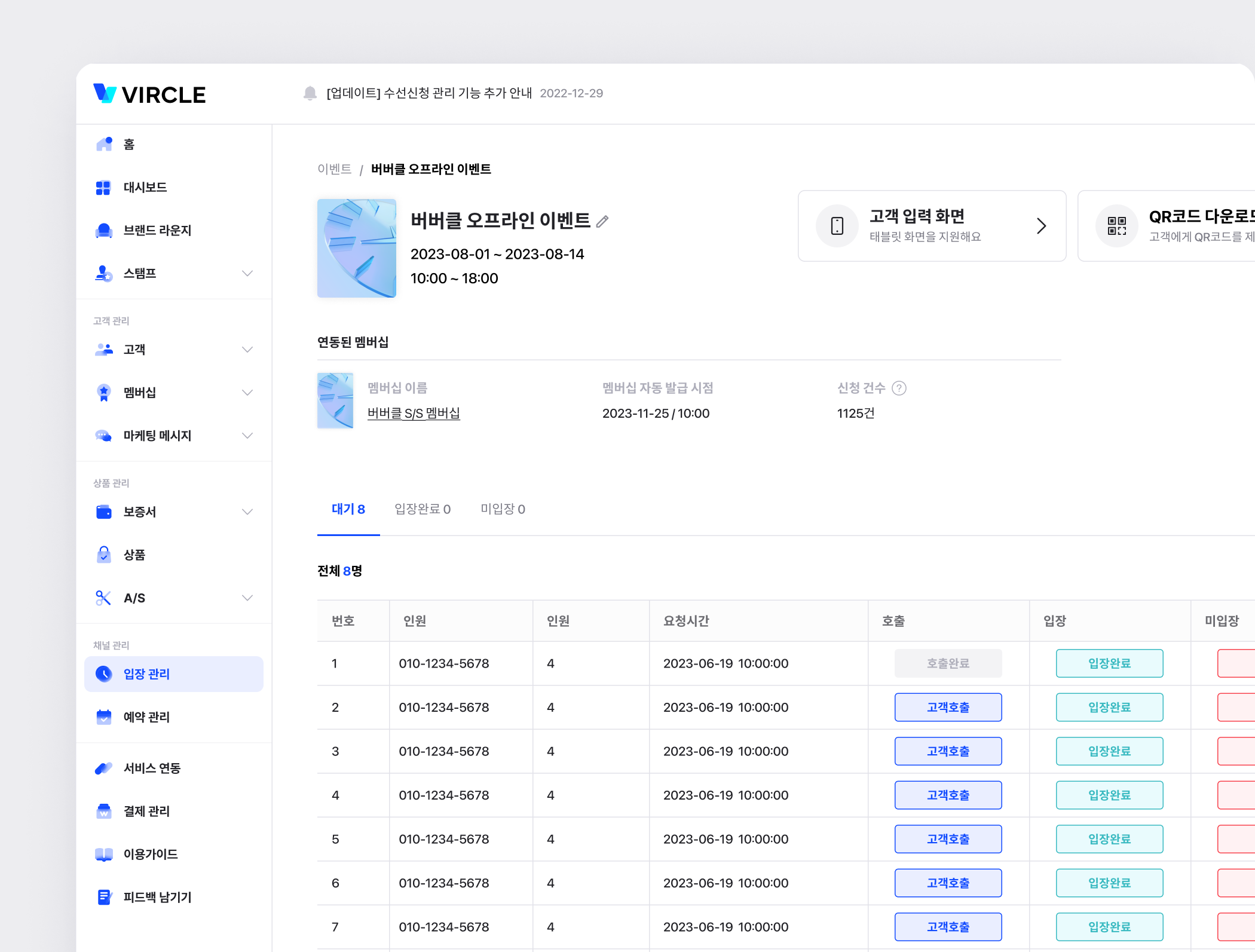 이벤트 정보를 등록하여 오프라인 매장과 행사에서 고객에게 대기번호를 부여하고 순차적으로 입장할 수 있게 해보세요.