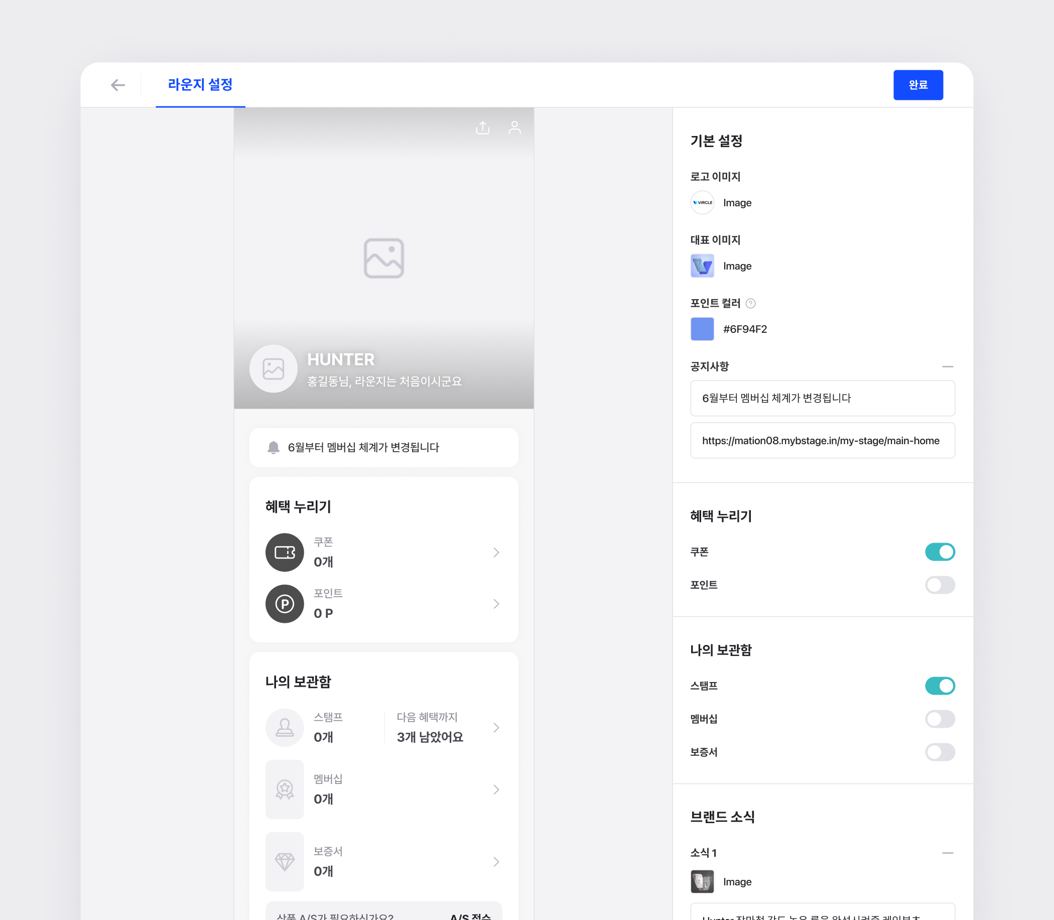 직접 라운지 공간을 꾸며서 다양한 컨텐츠, 이벤트 소식, 공지사항 등을 고객에게 전달할 수 있습니다.