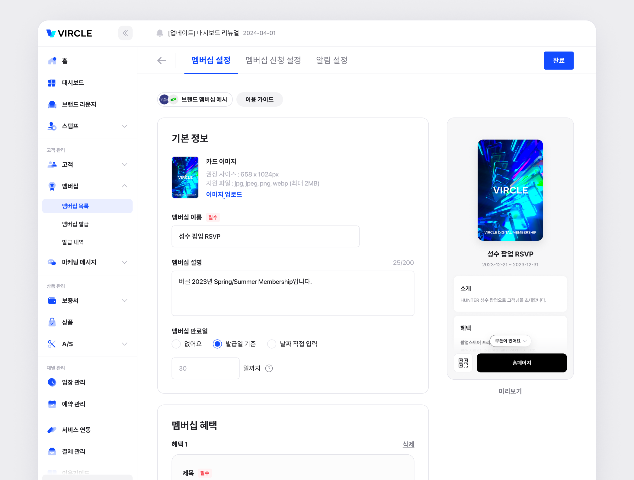 고객 별 맞춤 혜택을 직접 설정하여 멤버십을 발급할 수 있습니다.