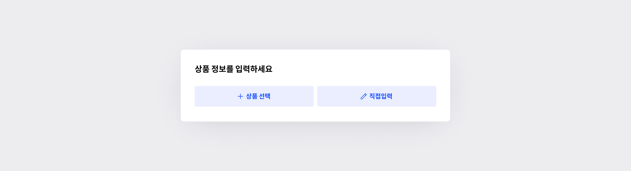 상품선택: 기존에 등록해둔 상품을 선택하는 방식입니다.직접입력: 상품 정보를 새로 입력합니다.