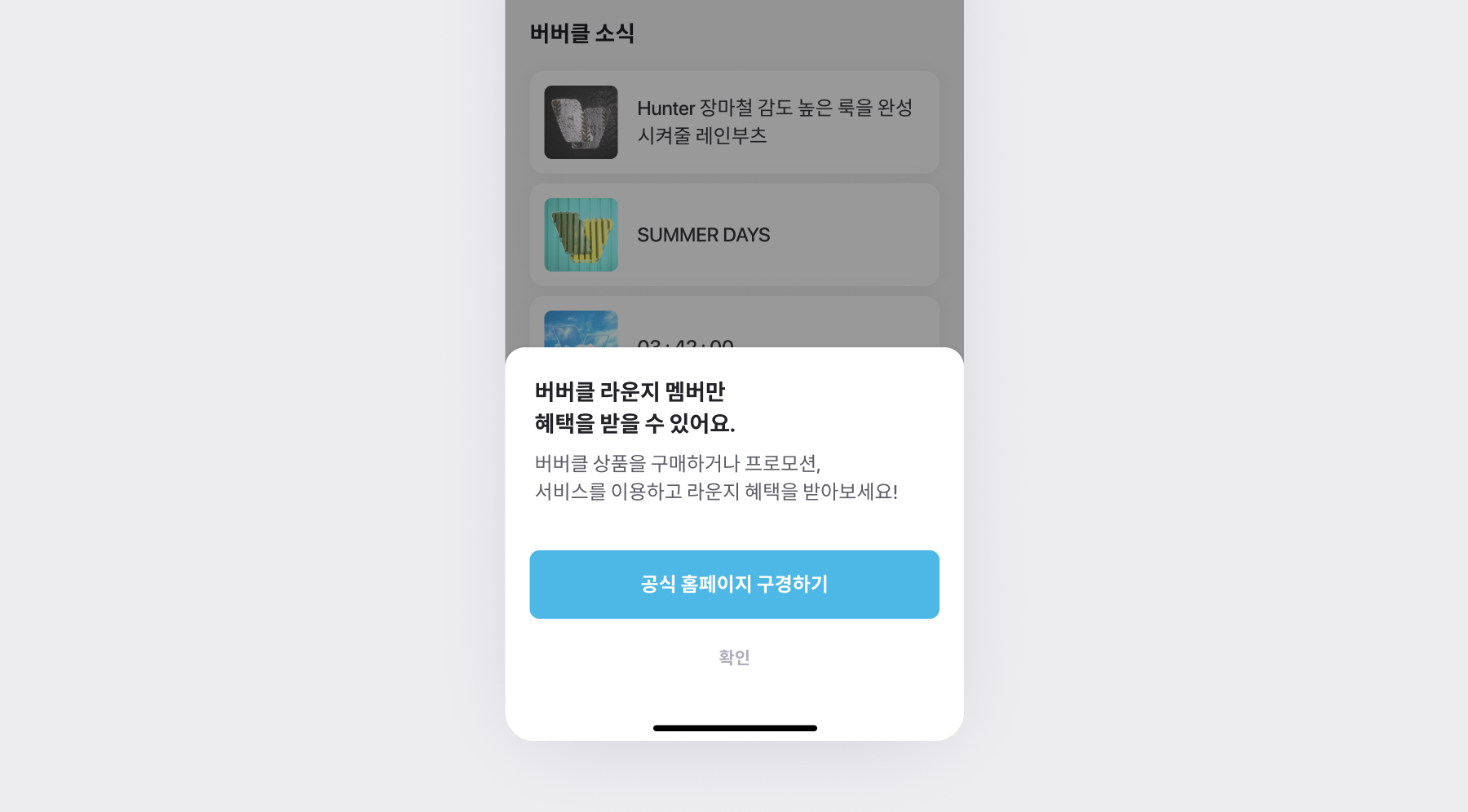 멤버가 아닌 사람, 즉 게스트가 브랜드 소식을 클릭하면 위 화면처럼 뜨더라구요!