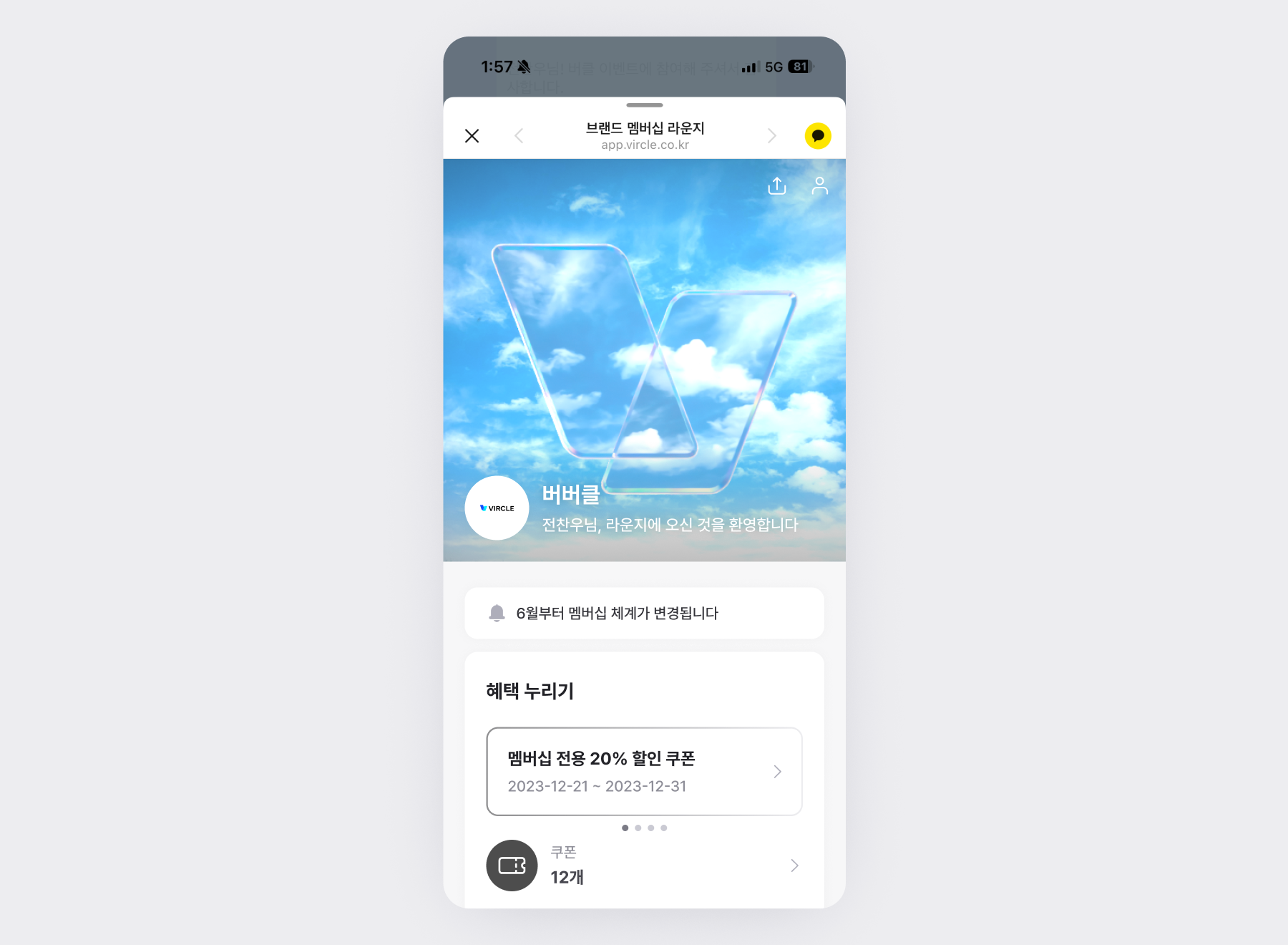 브랜드 라운지에 진입할 수 있게 됩니다.