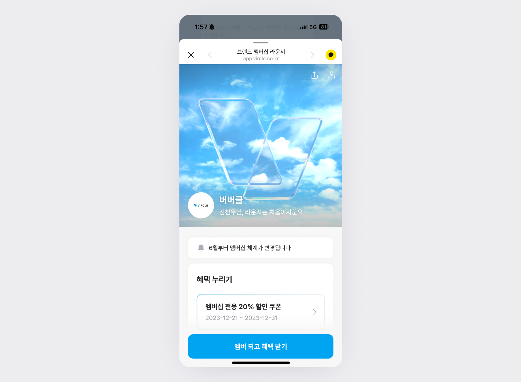 [멤버 되고 혜택 받기] 버튼이 노출됩니다.